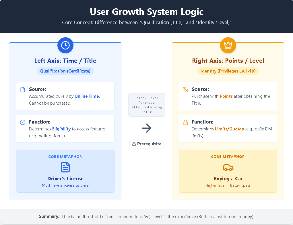 Nhiều người dùng mới sau khi tích lũy đủ điểm có thể nhận ra mình vẫn không thể nâng cấp level hoặc sử dụng các tính năng cao cấp như "bỏ phiếu", "bán hàng". Điều này là do diễn đàn CM áp dụng một hệ thống "lớn lên song song" độc đáo. Ở đây, điểm (tài sản) không phải là tiêu chí duy nhất, thời gian online (thâm niên) cũng quyết định giới hạn quyền hạn của bạn. Bài viết này sẽ giải thích chi tiết sự khác biệt và mối liên hệ giữa hai con đường phát triển này.