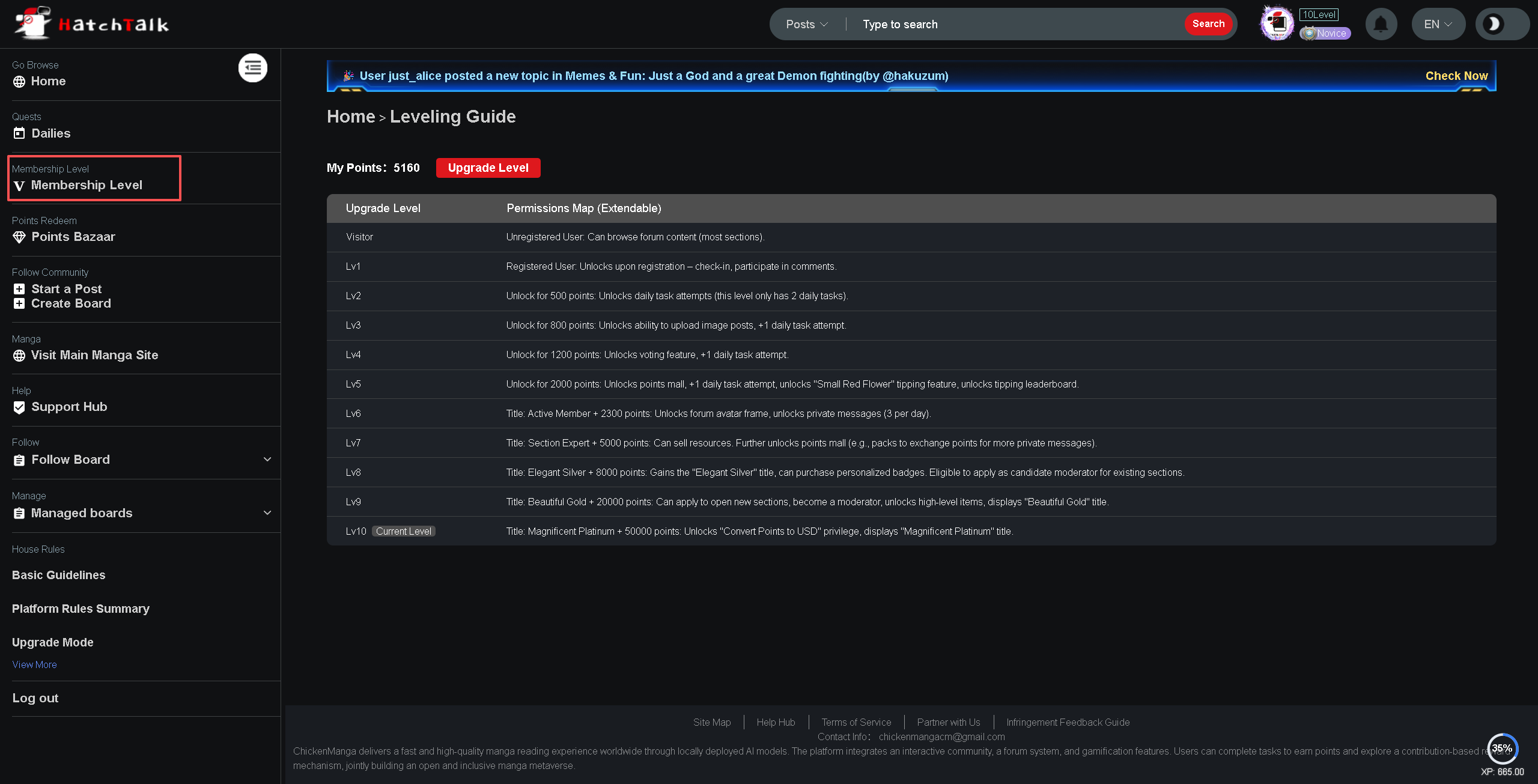 - Cấp độ (Lv.1 - Lv.10) = Đặc quyền thân phận
