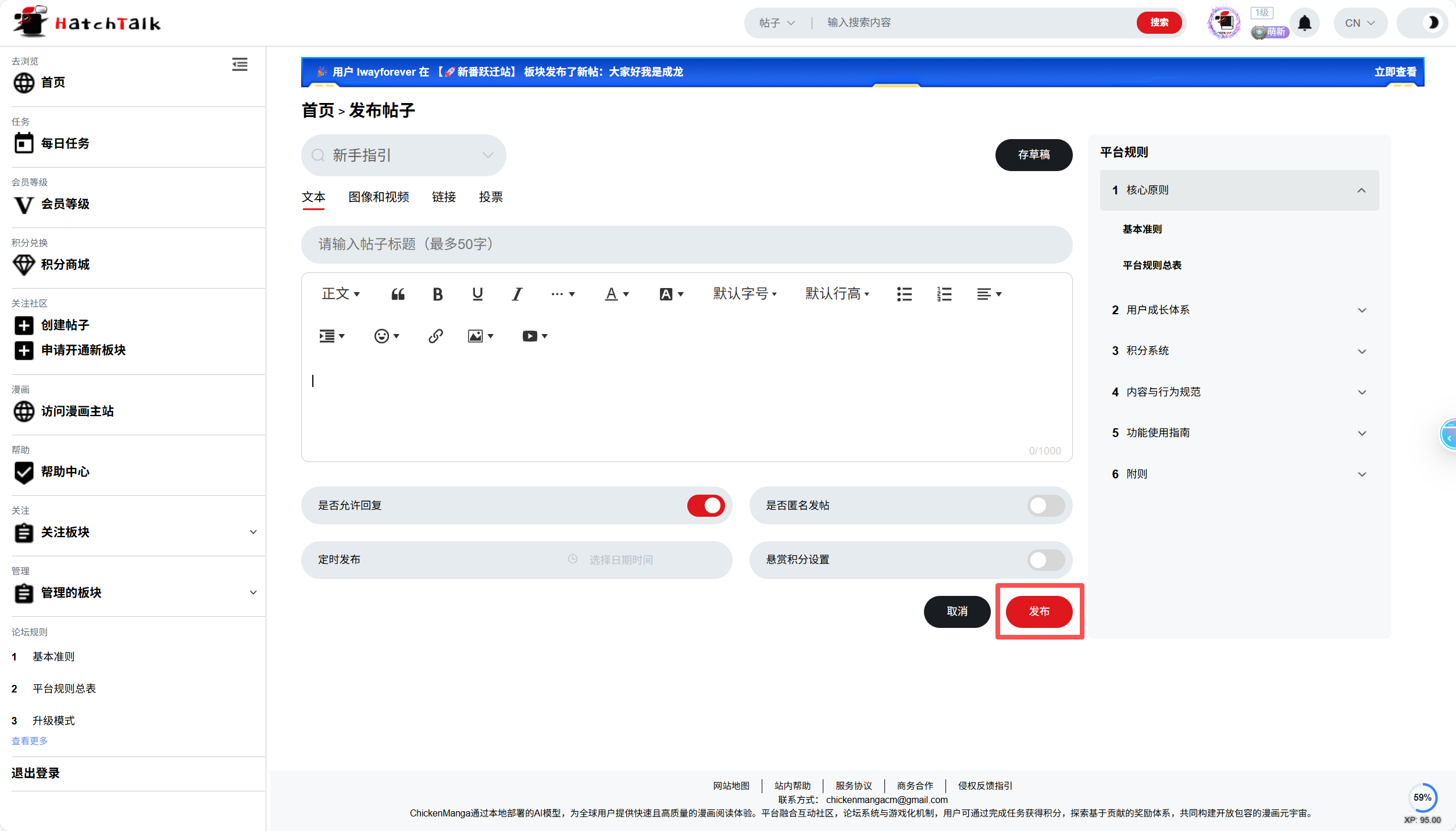Ở góc dưới bên phải trang web diễn đàn, có một thanh đếm thời gian hình tròn màu xanh lam, đây là công cụ cốt lõi để bạn tích lũy thâm niên.