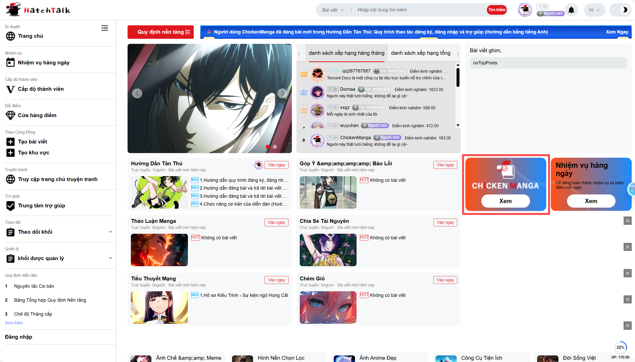 Tóm lại: Trước tiên tích lũy "danh hiệu" bằng cách treo máy, sau đó kiếm "điểm" bằng cách làm nhiệm vụ để mua "level". Đi song song hai đường, bạn mới có thể thoải mái trên diễn đàn CM.