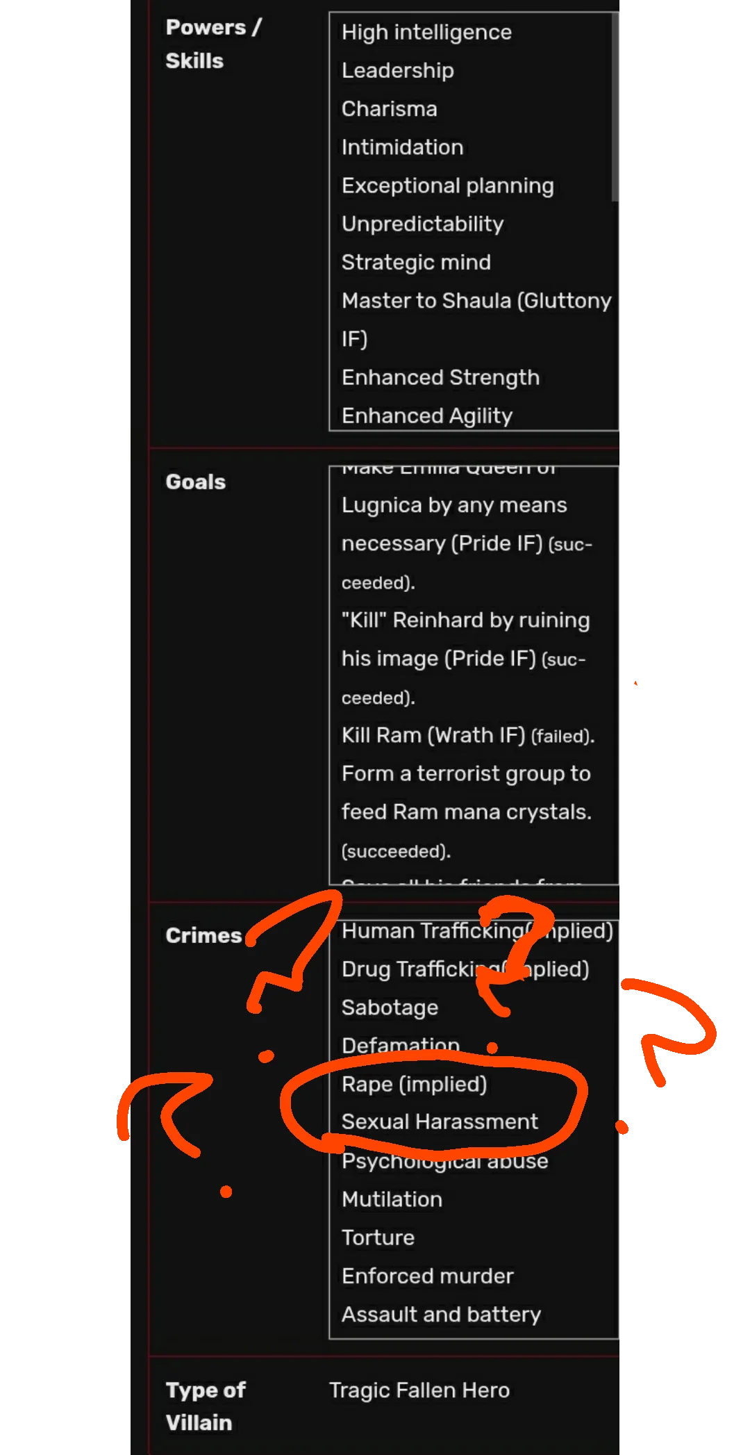 Mình đang xem trang wiki về nhân vật phản diện và thấy có mục về Subaru Natsuki (trong các tuyến truyện IF). Mình muốn biết là trong các bản IF đó, Subaru đã từng cưỡng hiếp hoặc quấy rối tình dục ai chưa? Điều đó có thật không, hay wiki đã ghi hoàn toàn sai?